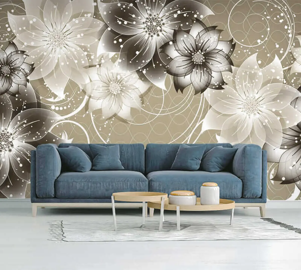 wall murals Бело цвеће на беж позадини u17606