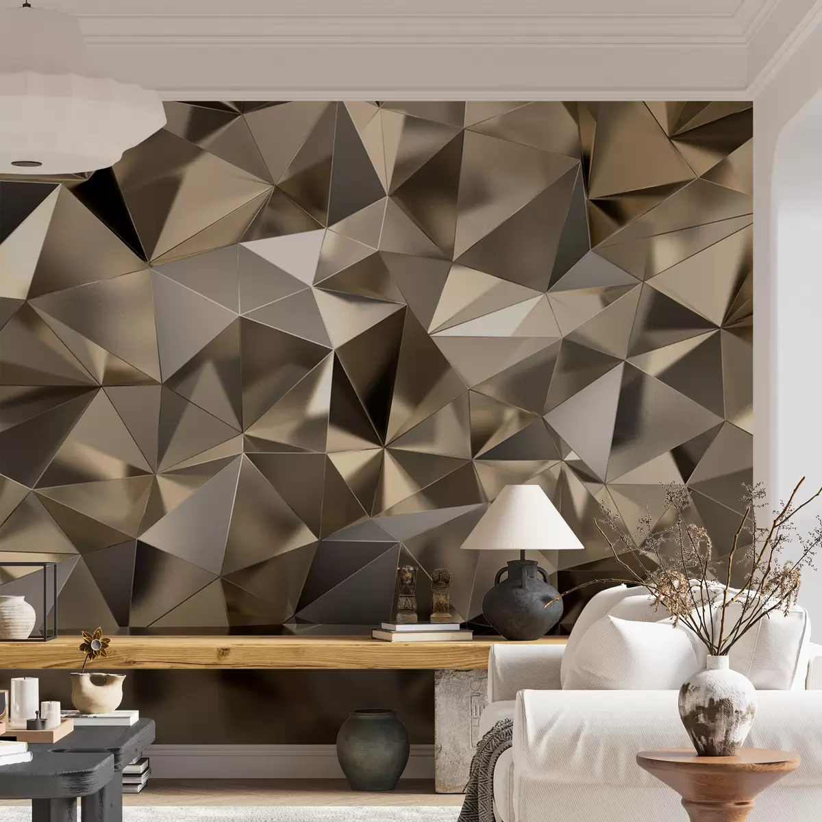 Тапете за зид Браон, троугао и сива бр. u93417