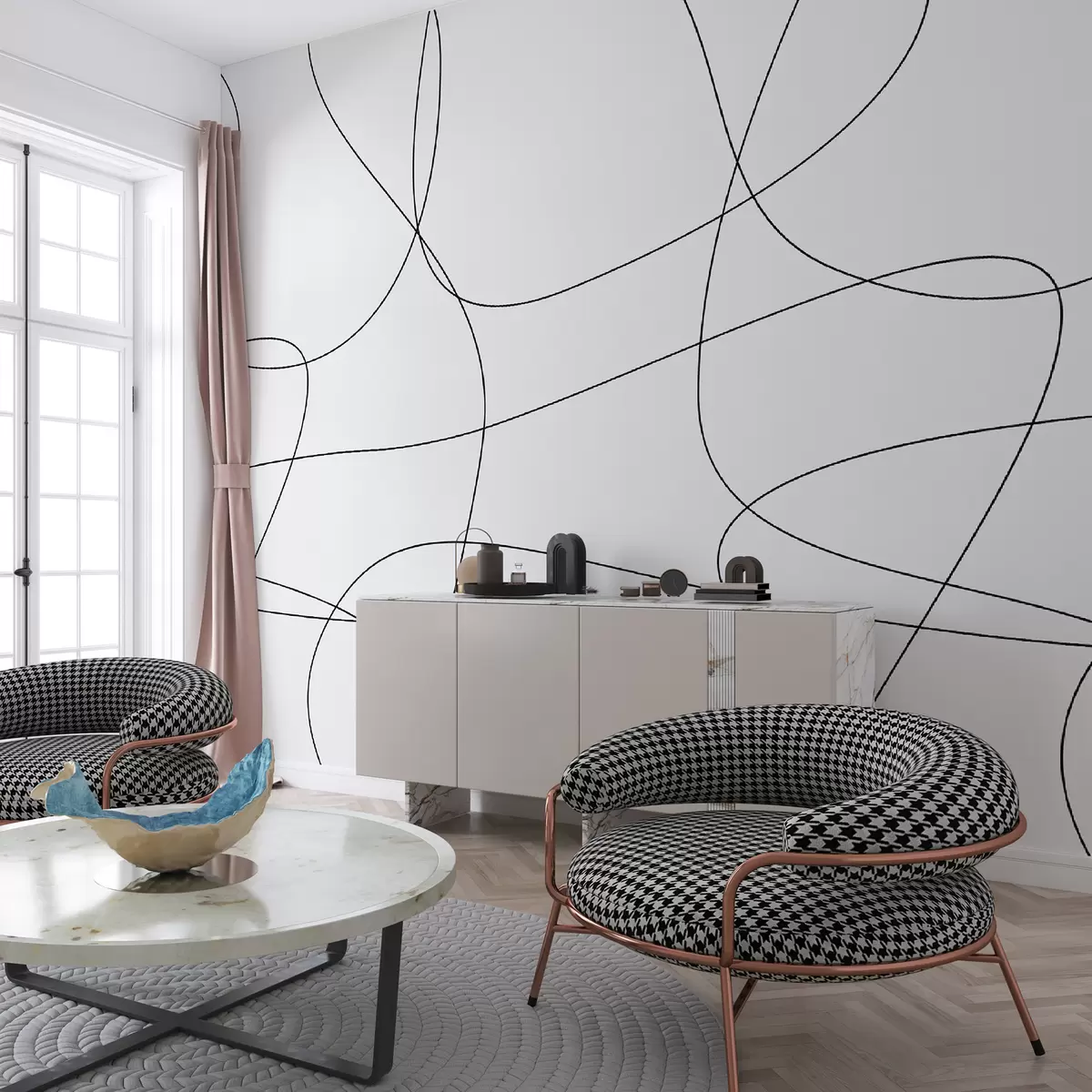 Тапете за зид Елегантне тапете са линијама у бохо стилу бр. u98563