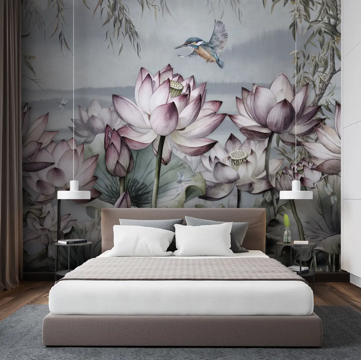 wall murals Пејзажни лотосов цвет са водомаром u95397
