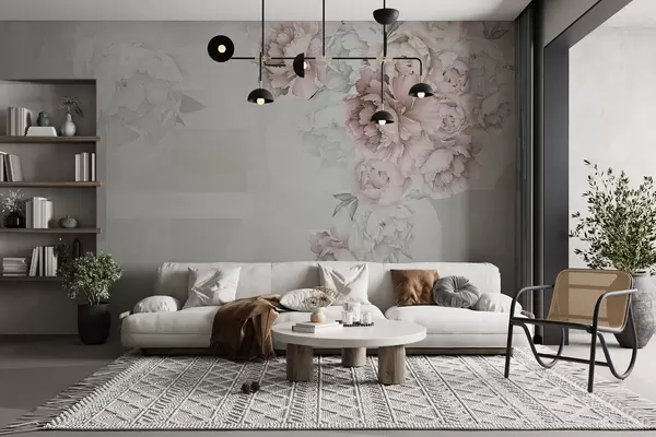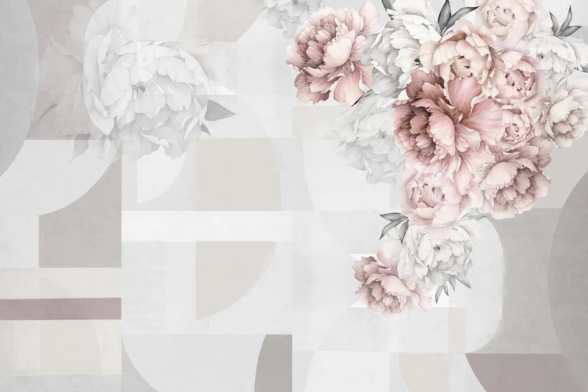 Тапете за зид Водоводних пеонијева у ружичастој боји са геометријском пореклом бр. u95855