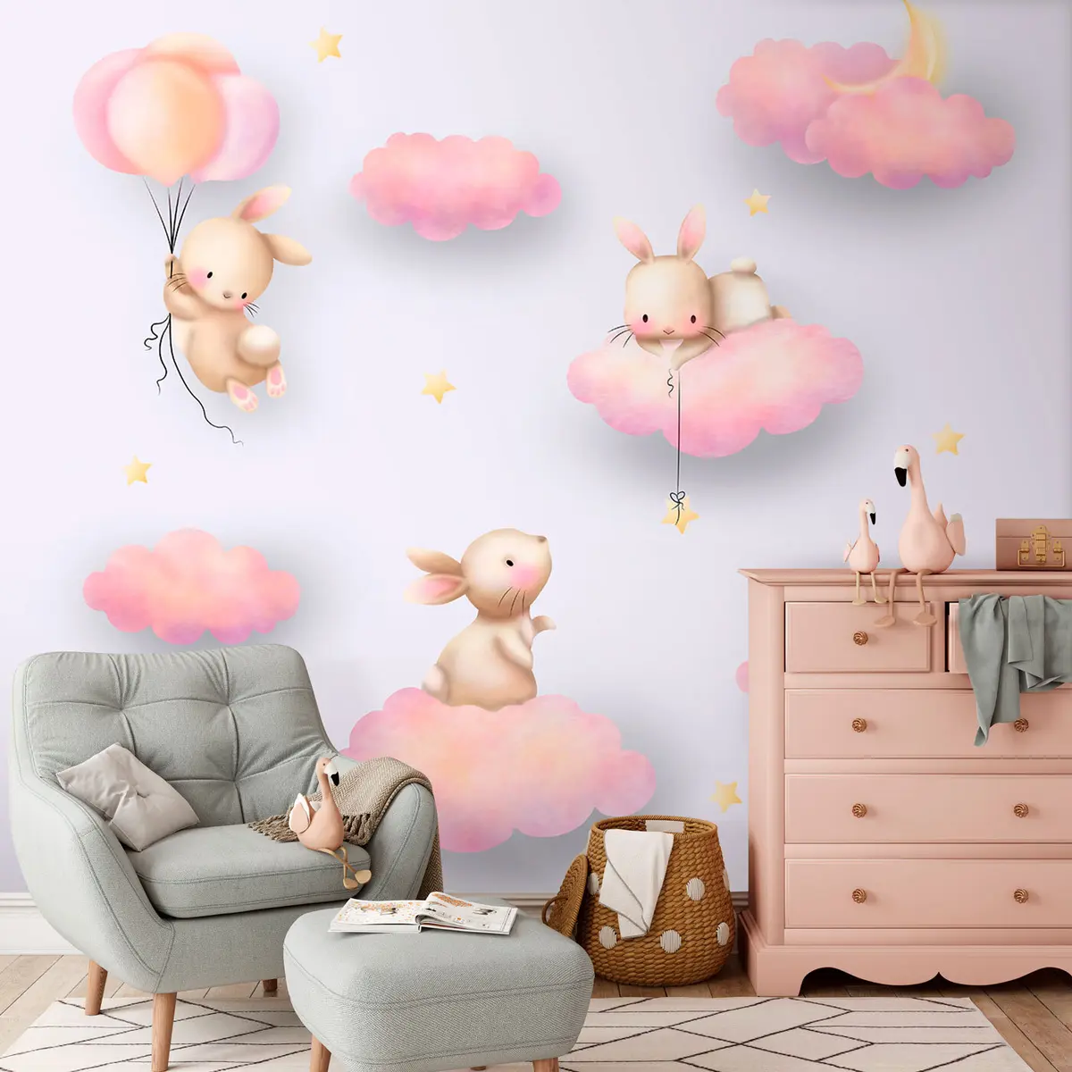 Тапете за зид Зечићи на облацима у дечијем стилу бр. u96613