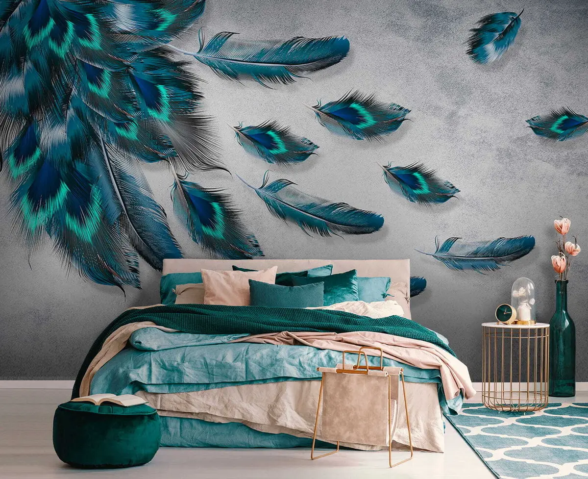 Тапете за зид Пеацоцк перје на позадини бетонског зида бр. u29836