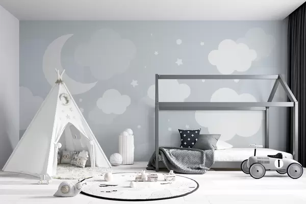 Тапете за зид Слатка позадина са облацима, звездама и месецом на плавој позадини бр. u97510