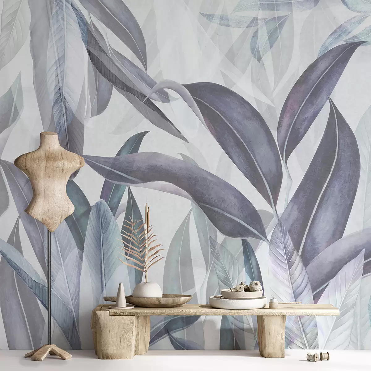 Тапете за зид Зелено и розе палмино лишће у плавим бојама бр. u94302v1
