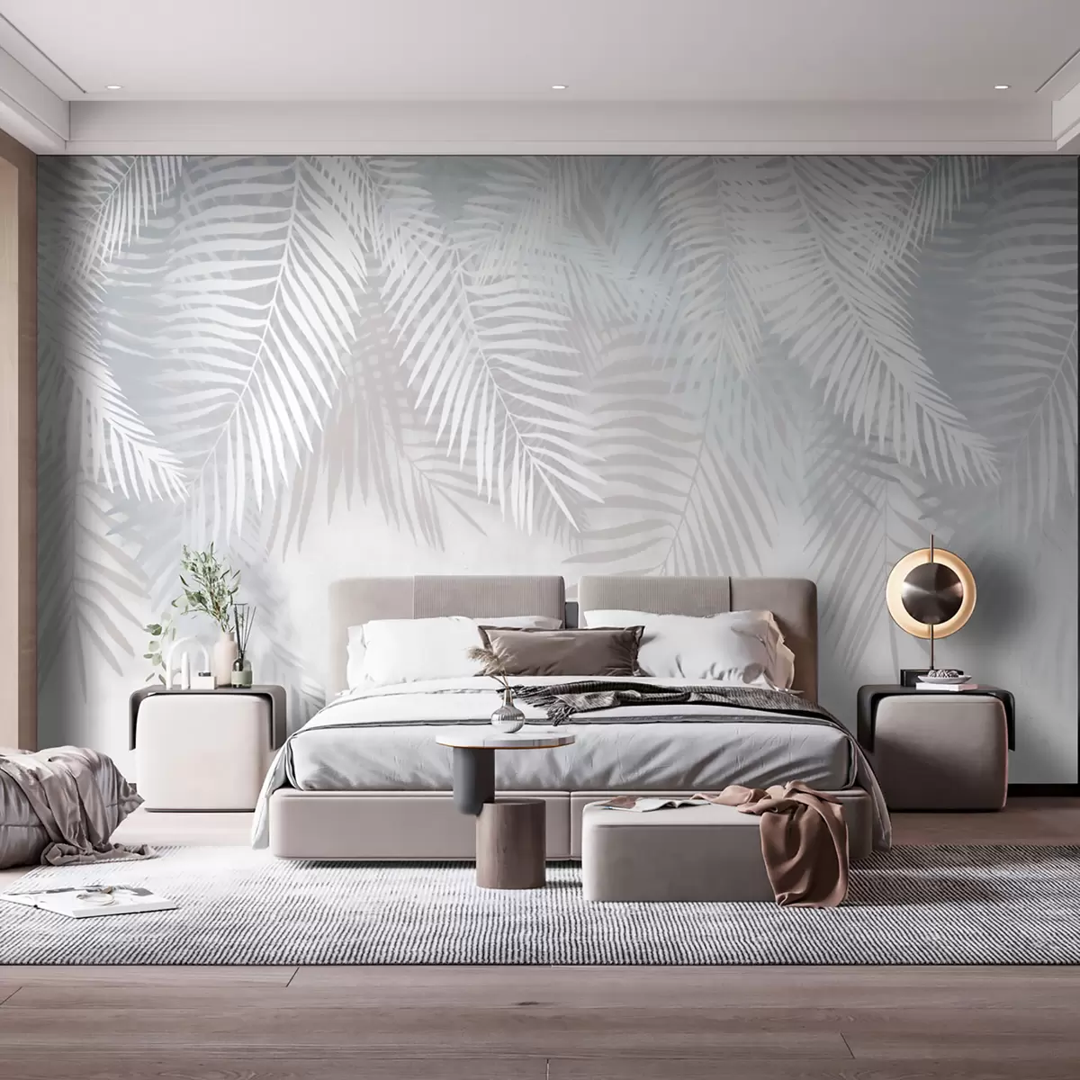 Тапете за зид Бели палми оставља на грунге текстуру бр. u94457