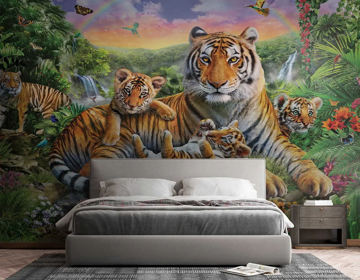 Тапете за зид Бенгалски тигар, сибирски тигар и биљка бр. u18516