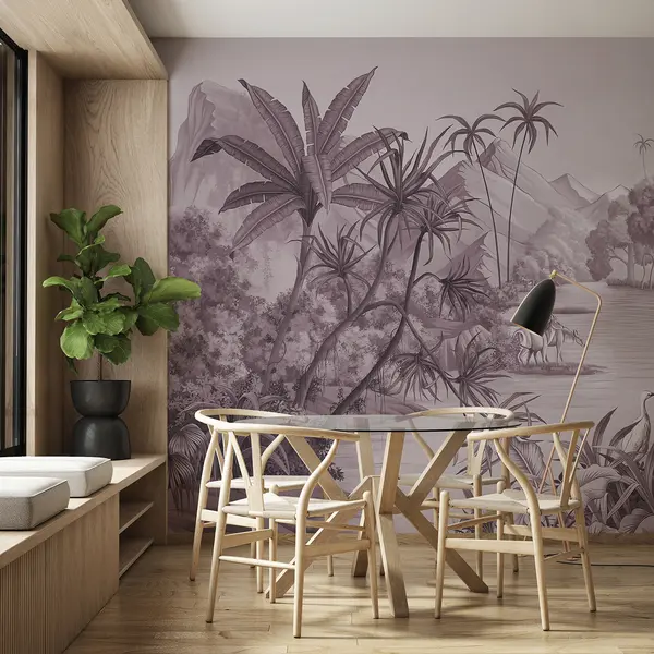 Тапете за зид Црно-бели тропи у љубичастим бојама бр. u59040v3