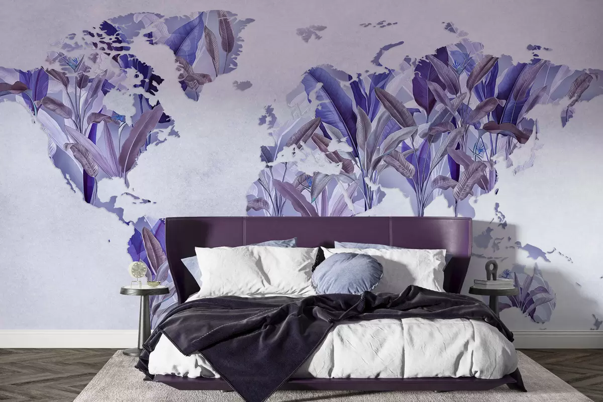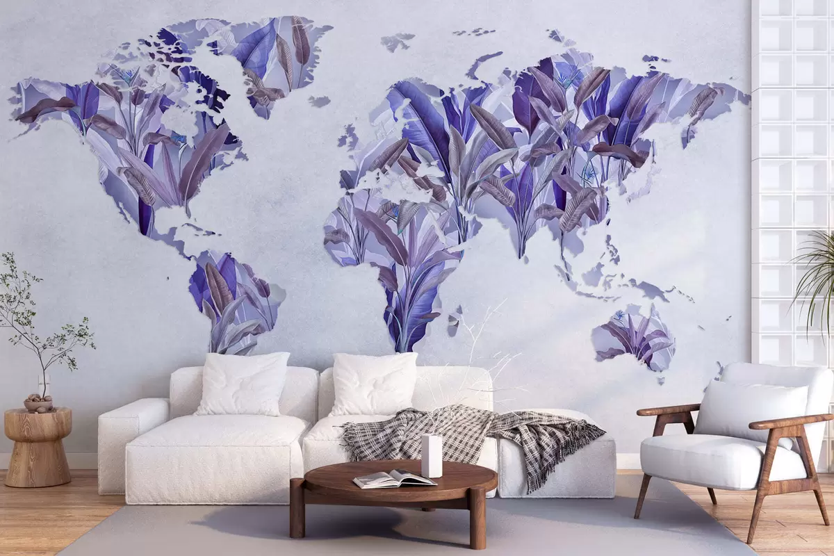 Тапете за зид Љубичаста мапа света направљена од листова банане бр. c00007v1