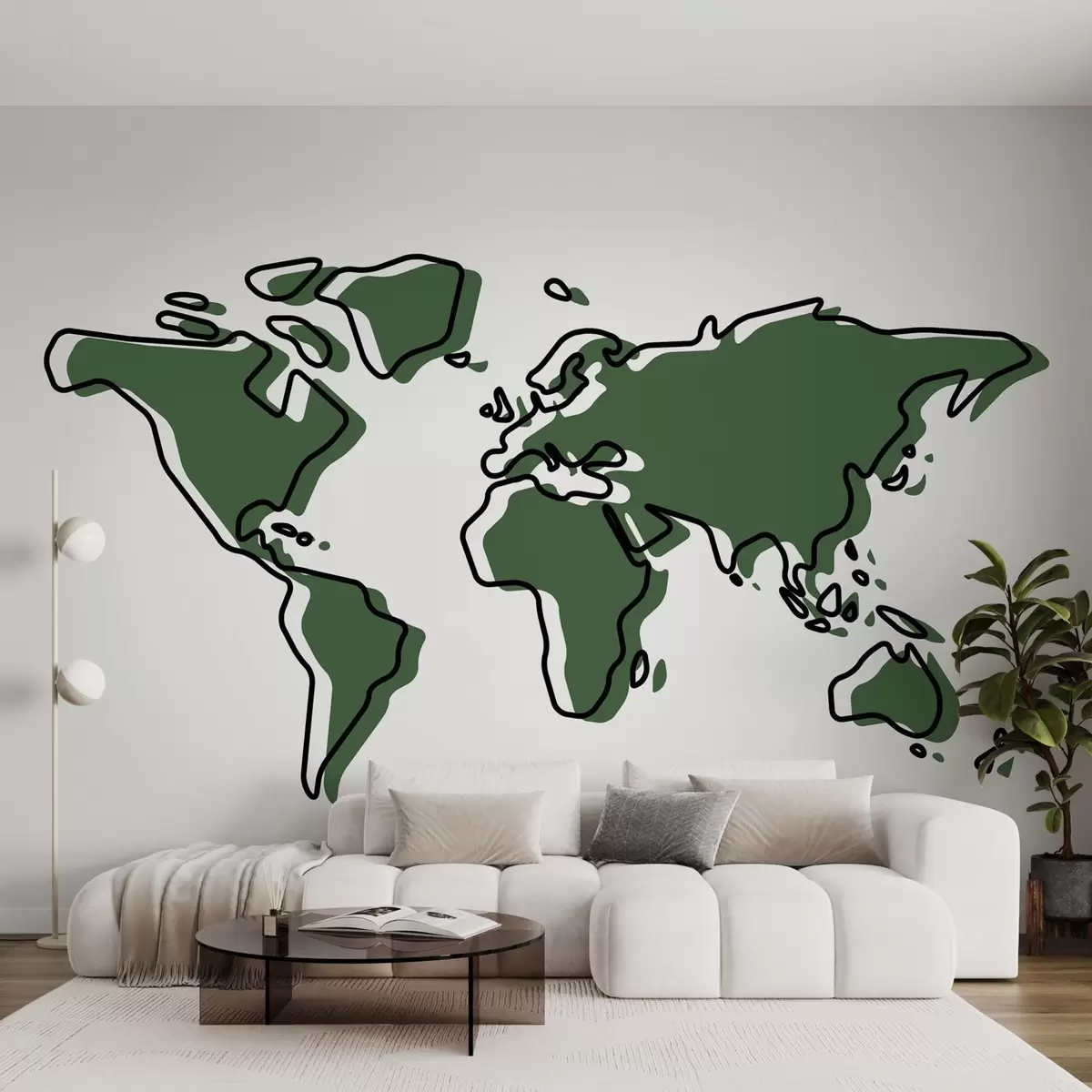 Тапете за зид Поједностављена илустрација мапе света у зеленој боји бр. u99073v2