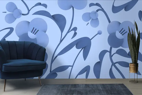 Тапете за зид Ботаничка штампа са украсним плавим цветовима бр. u99196v8