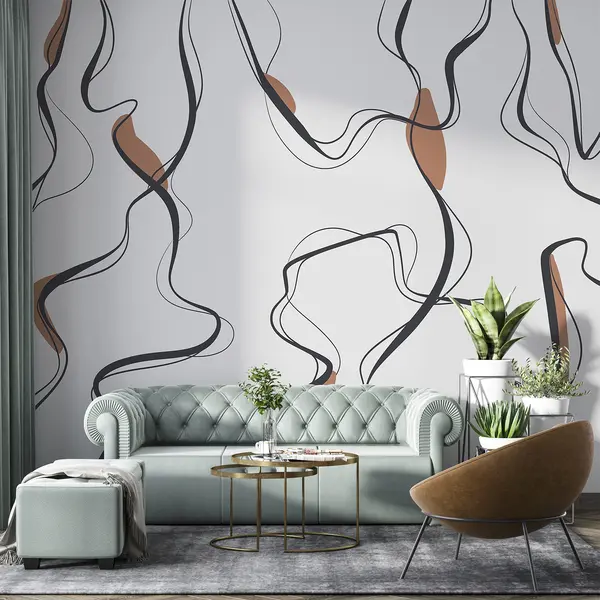 Тапете за зид Уметност цртања мастилом, апстрактни узорак, геометријске линије, сива и наранџаста бр. u99659v3