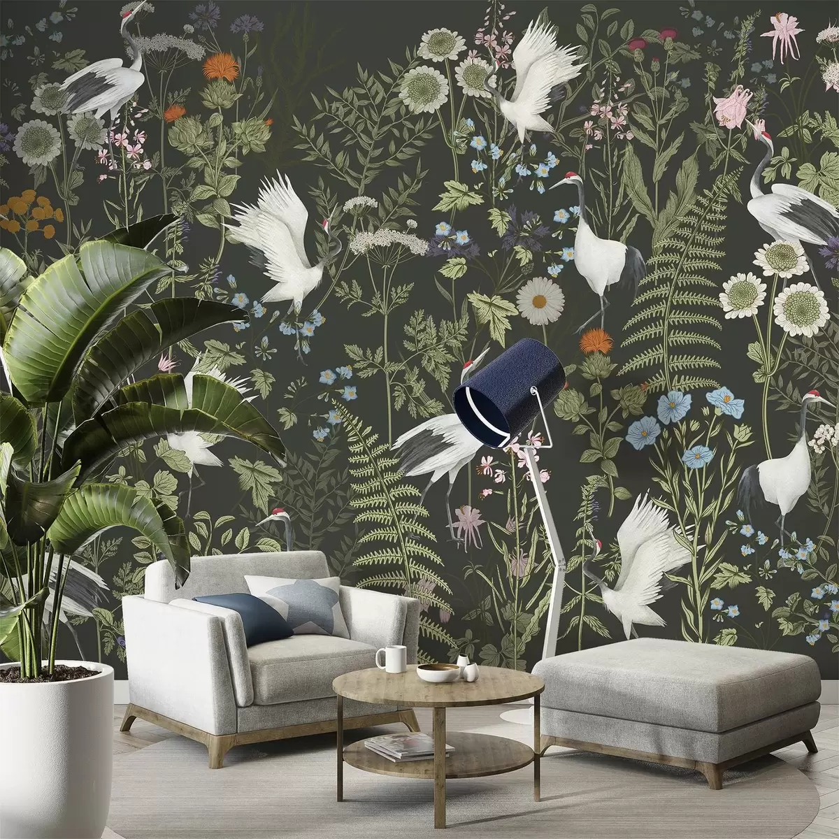 Тапете за зид Ждралови плешу међу живим цвећем бр. w00380v2