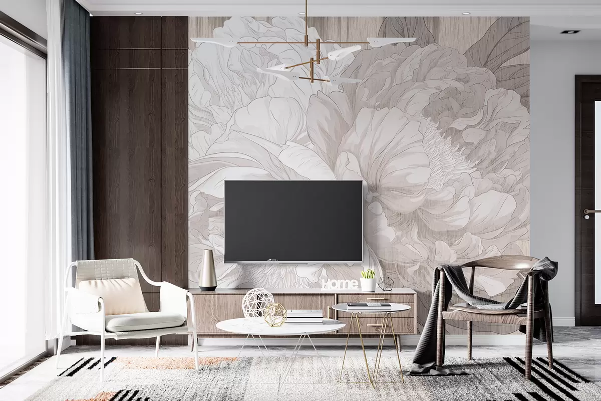 wall murals Текстурирани велики цветови божура у беж нијансама w01141