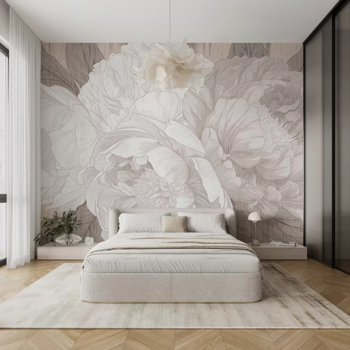 Тапете за зид Текстурирани велики цветови божура у беж нијансама бр. w01141
