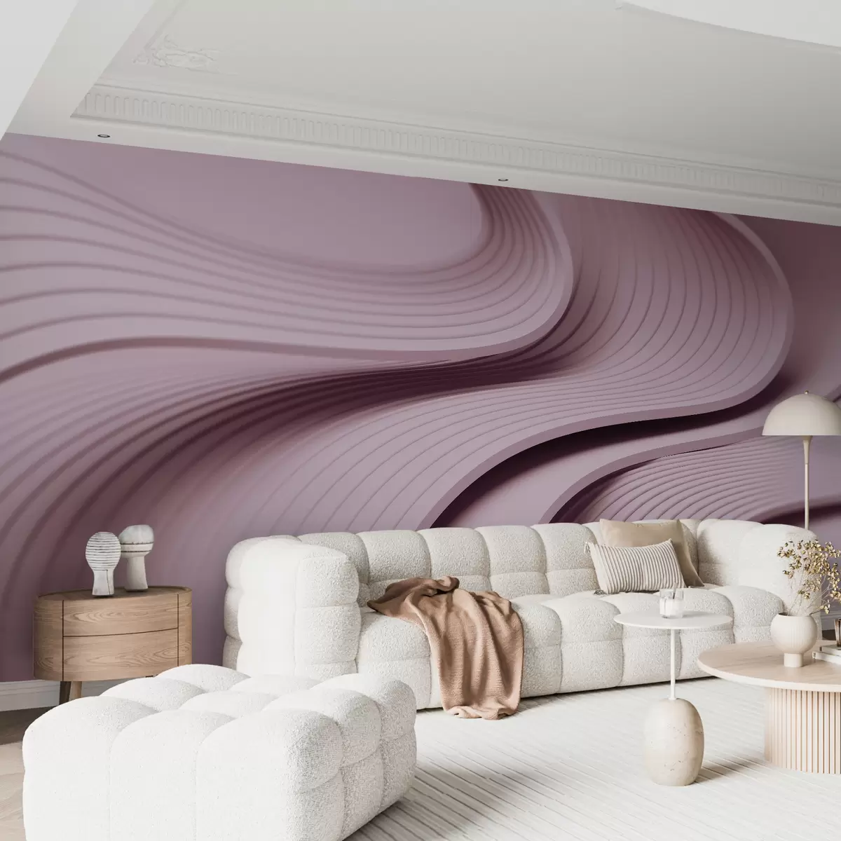 Тапете за зид Елегантни обимни таласи у 3Д стилу у нијансама пудера бр. w01147v1