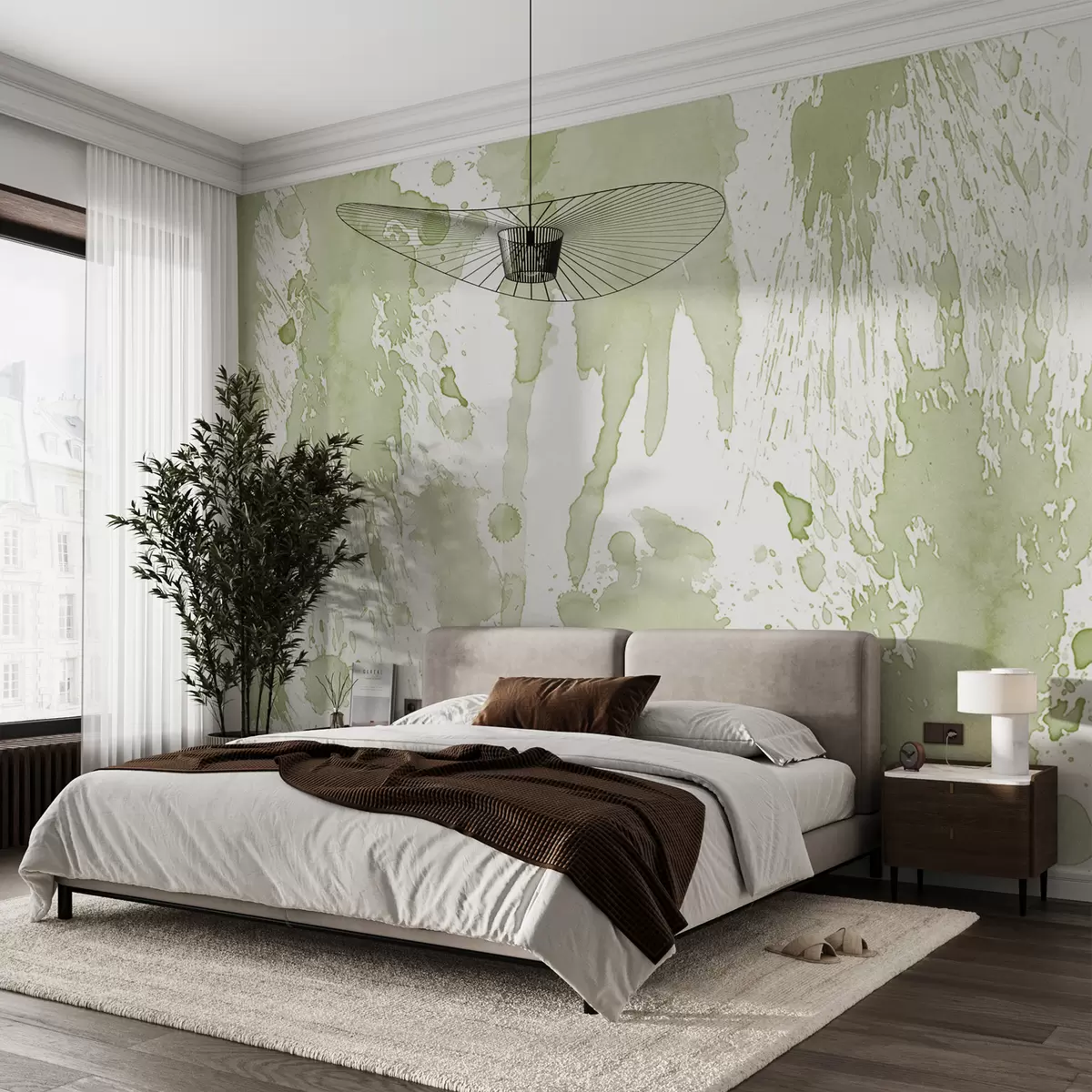 Тапете за зид Прскање акварела, апстракција цртежа бојом, зелена боја бр. w01285