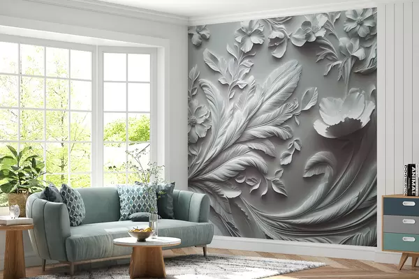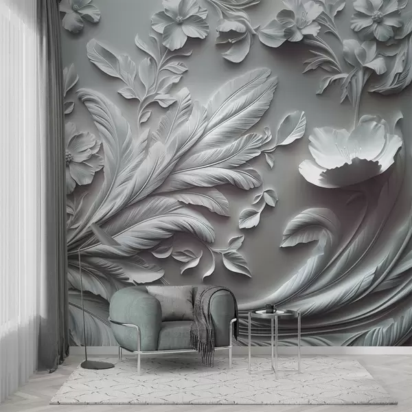 Тапете за зид Изузетно подигнуто цвеће и лишће у сивим тоновима бр. w01356v2