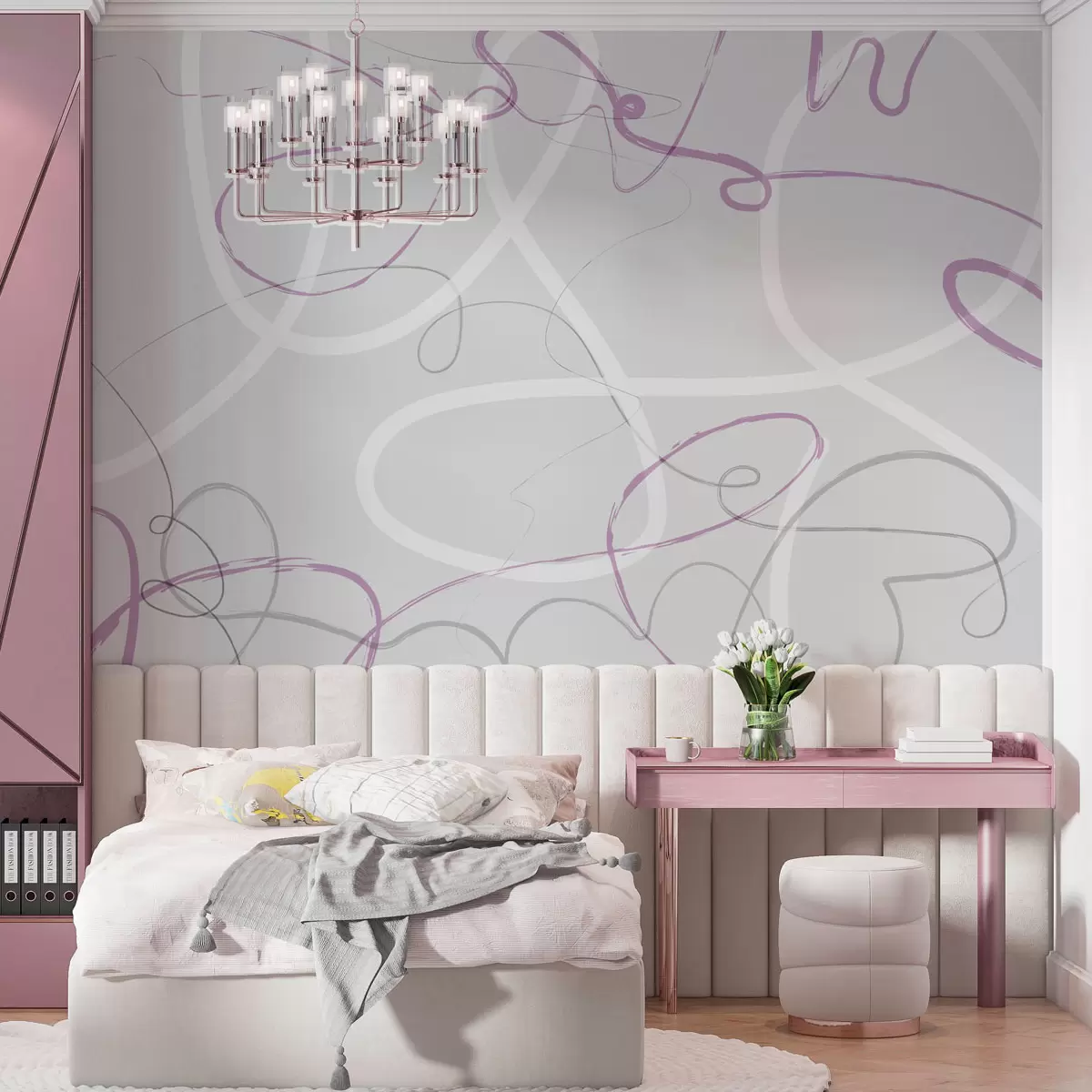 Тапете за зид Апстрактне љубичасте линије на сивој позадини бр. w01455v2