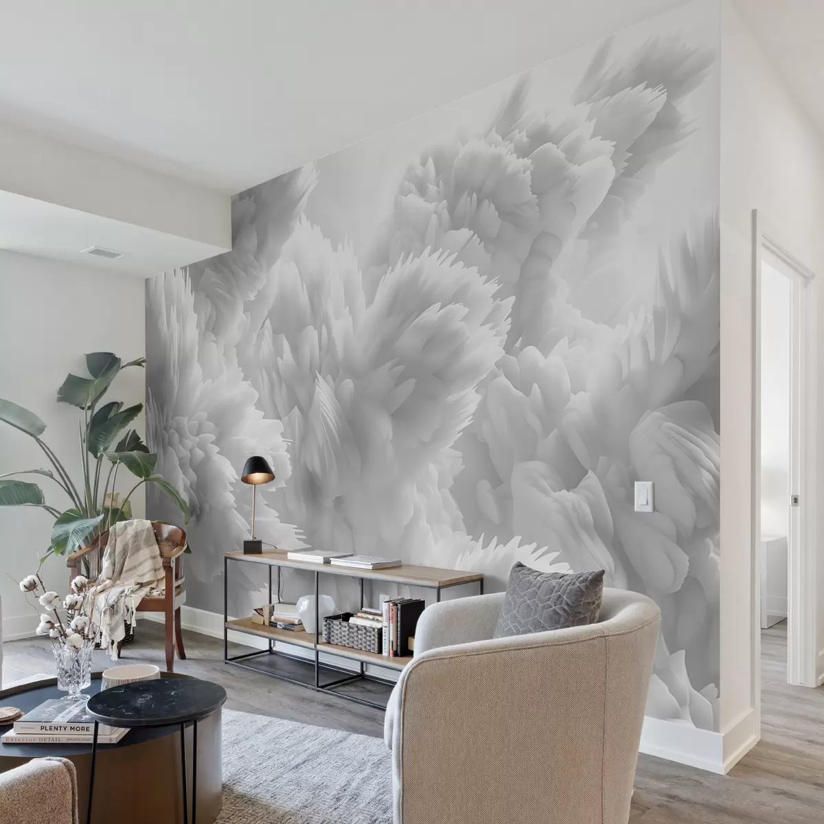 wall murals Апстрактна композиција снежних кристала у вишеслојној шари перја у етеричној атмосфери w01474