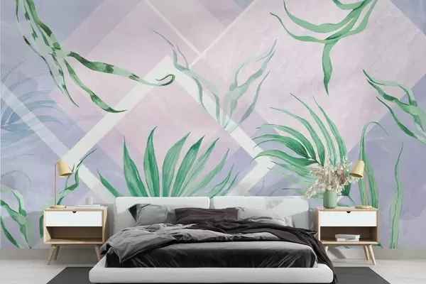 Тапете за зид Бујно зеленило на мекој пастелној позадини бр. w01625