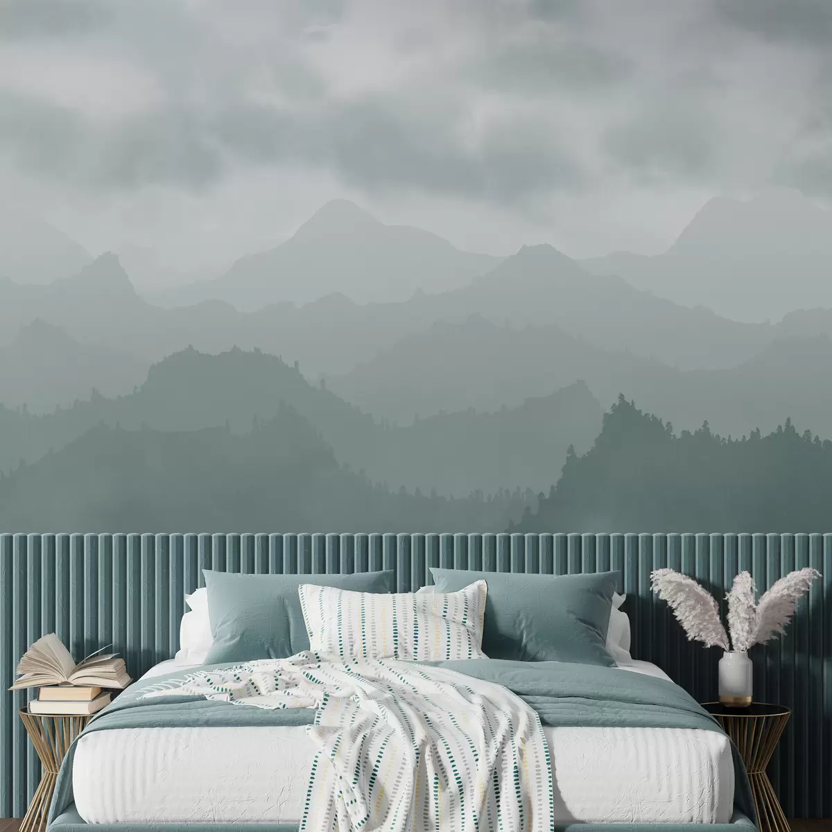 Тапете за зид Магловите планине са плавим облацима на небу бр. w01637v2