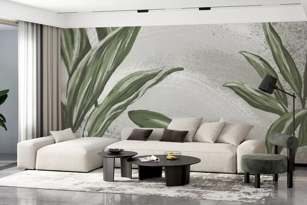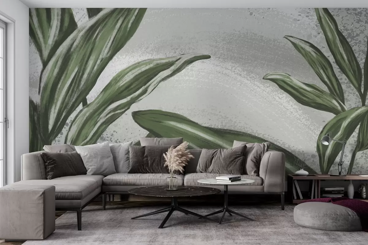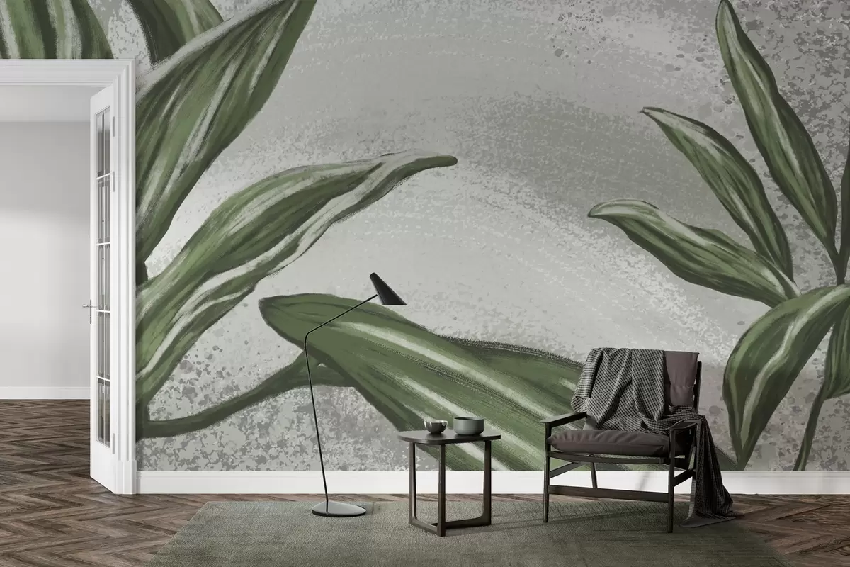 Тапете за зид Бујно зеленило на текстурираној позадини бр. w01682