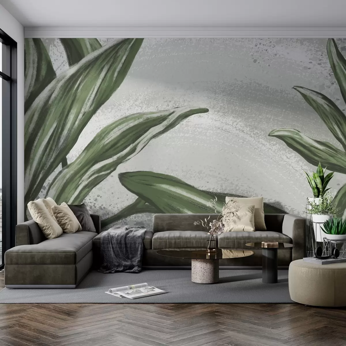 Тапете за зид Бујно зеленило на текстурираној позадини бр. w01682