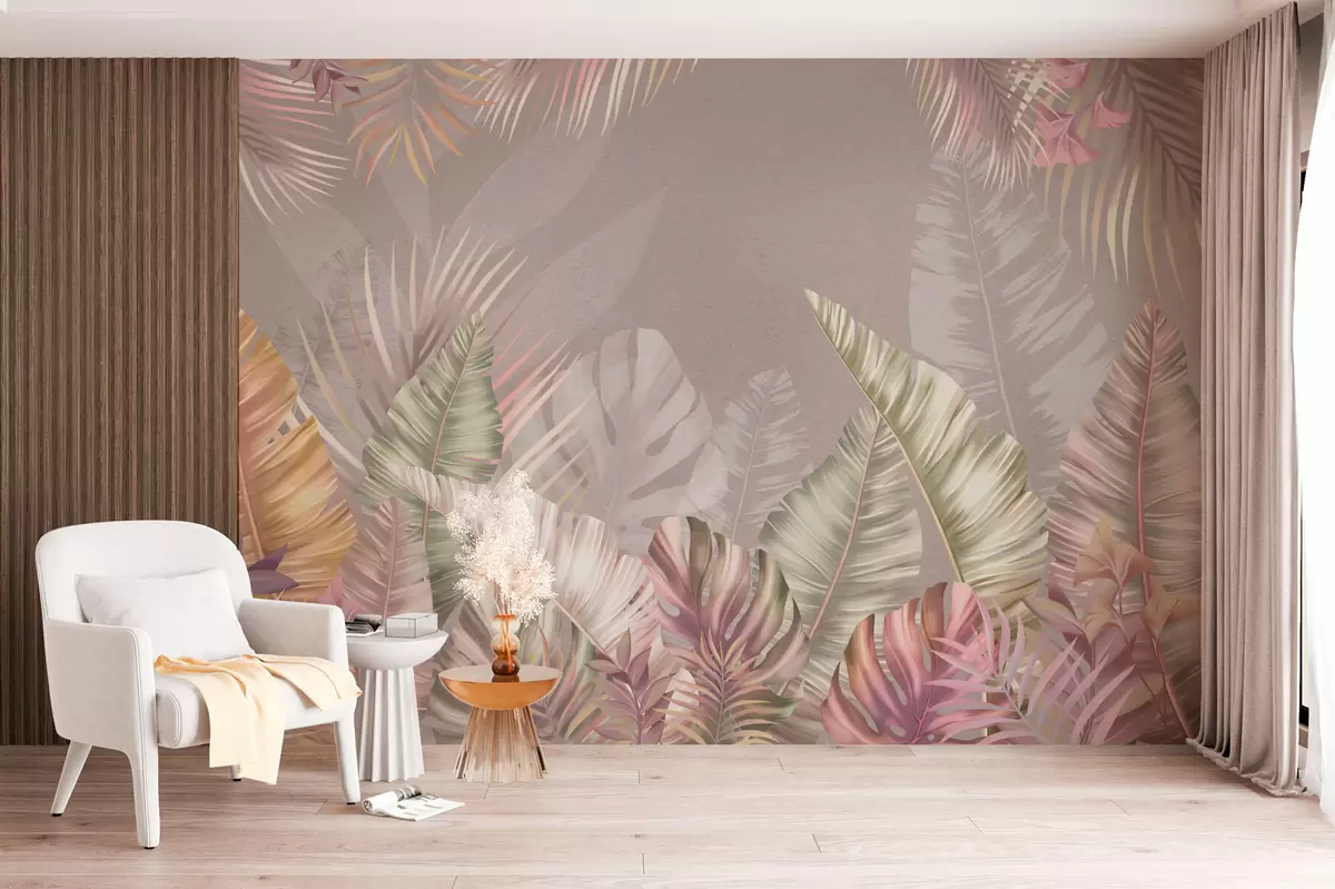 Тапете за зид Тропско лишће у меким пастелним нијансама бр. w01684