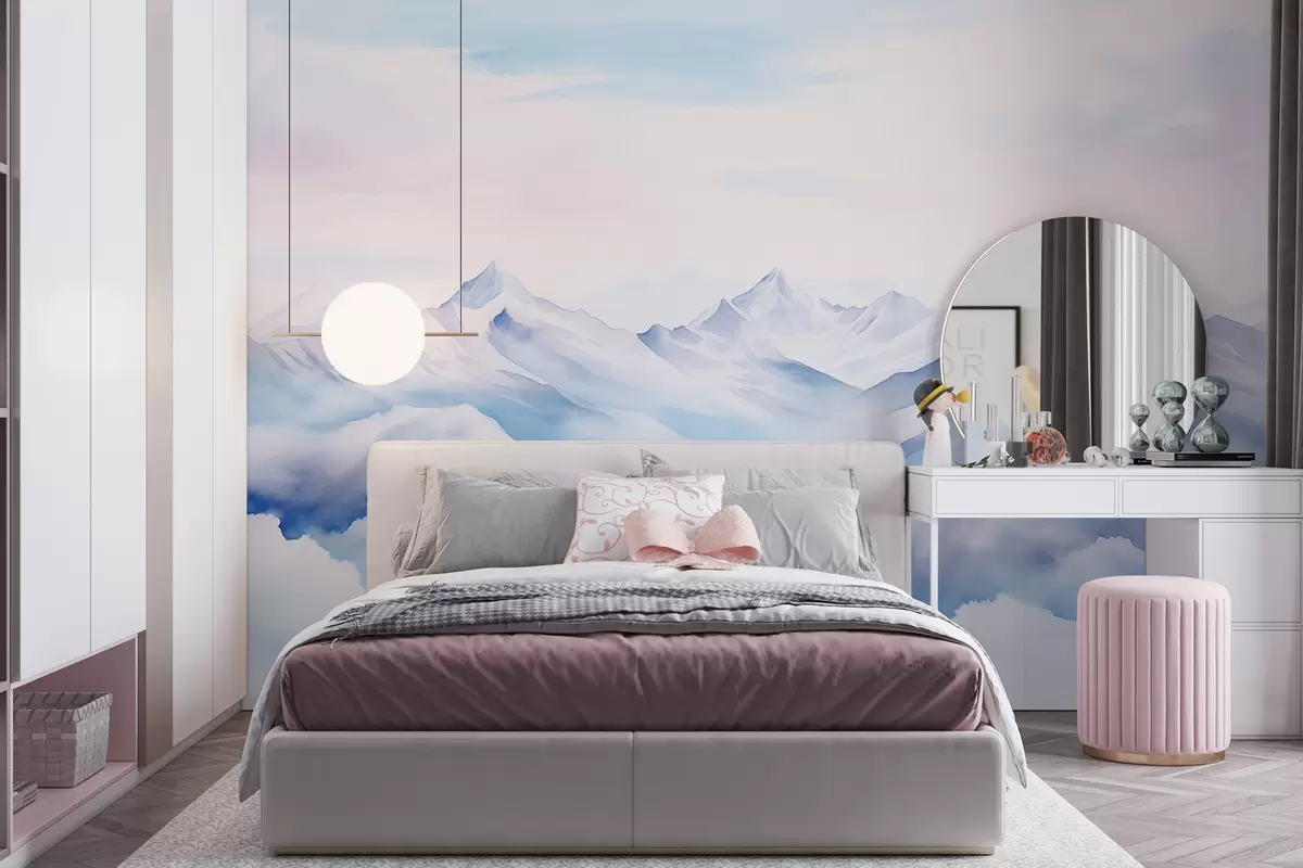 Тапете за зид Планински пејзаж, акварел, нежне љубичасте боје бр. w01787