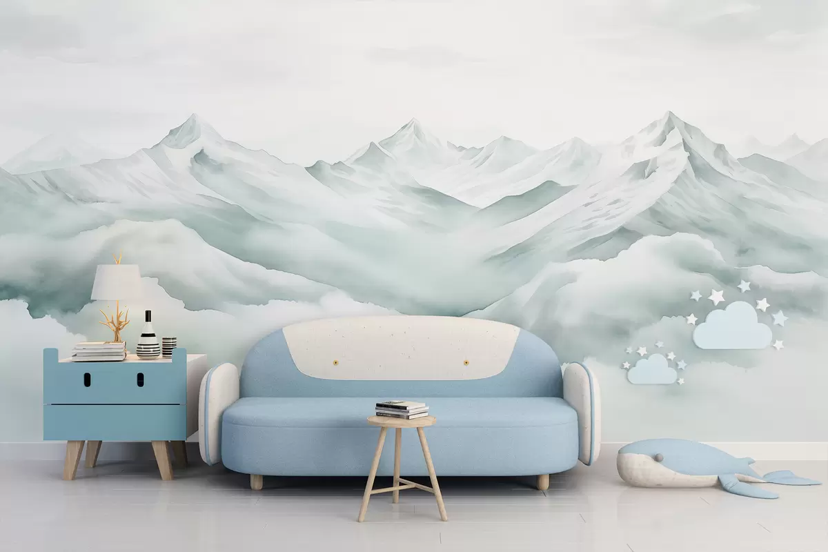 wall murals Планински пејзаж, акварел, нежно плаве боје w01787v2