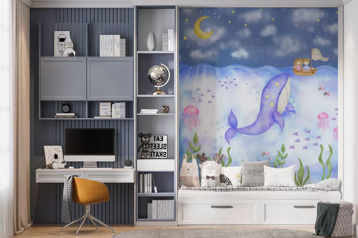 Тапете за зид Кит плива испод звездане ноћи бр. w01965