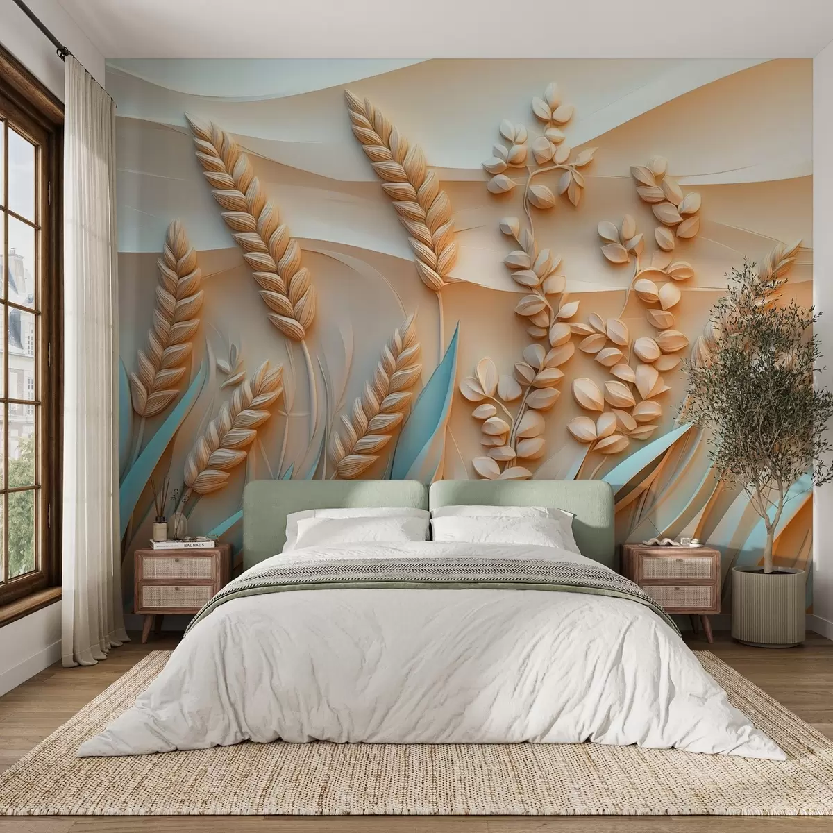 Тапете за зид Раст пшенице у рељефном стилу у деликатним бојама бр. w02147