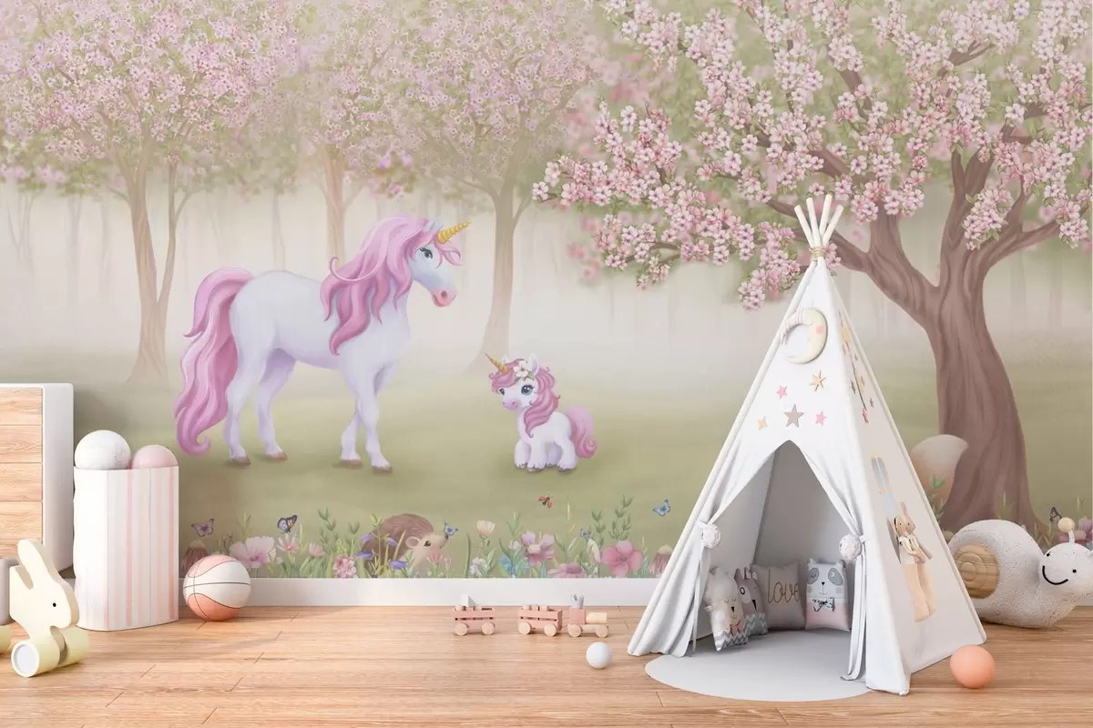 Тапете за зид Једнорози у магичној шуми са животињама бр. w02269