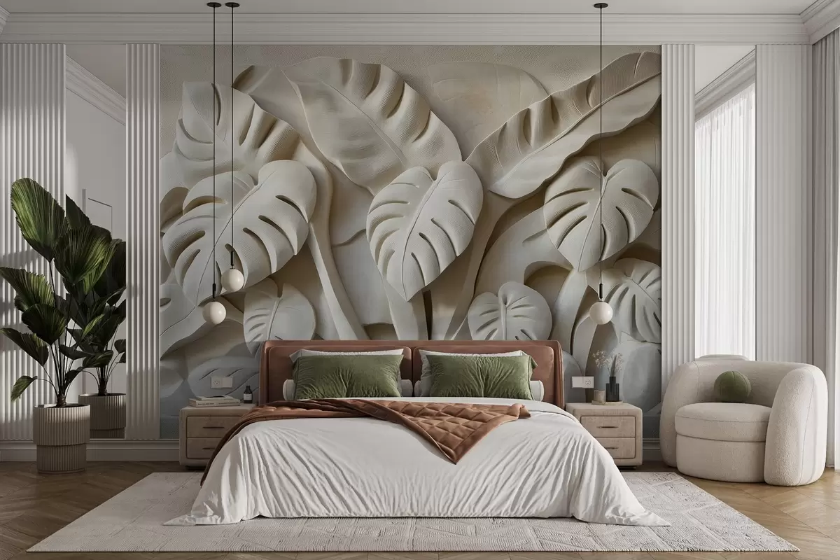 Тапете за зид Бас-рељеф од великих листова чудовишта бр. w02312