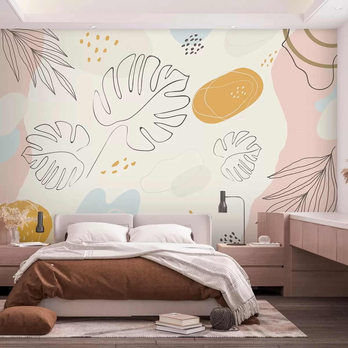 Тапете за зид Бохо дизајн са листовима и фигурама у пастелним бојама бр. w02322