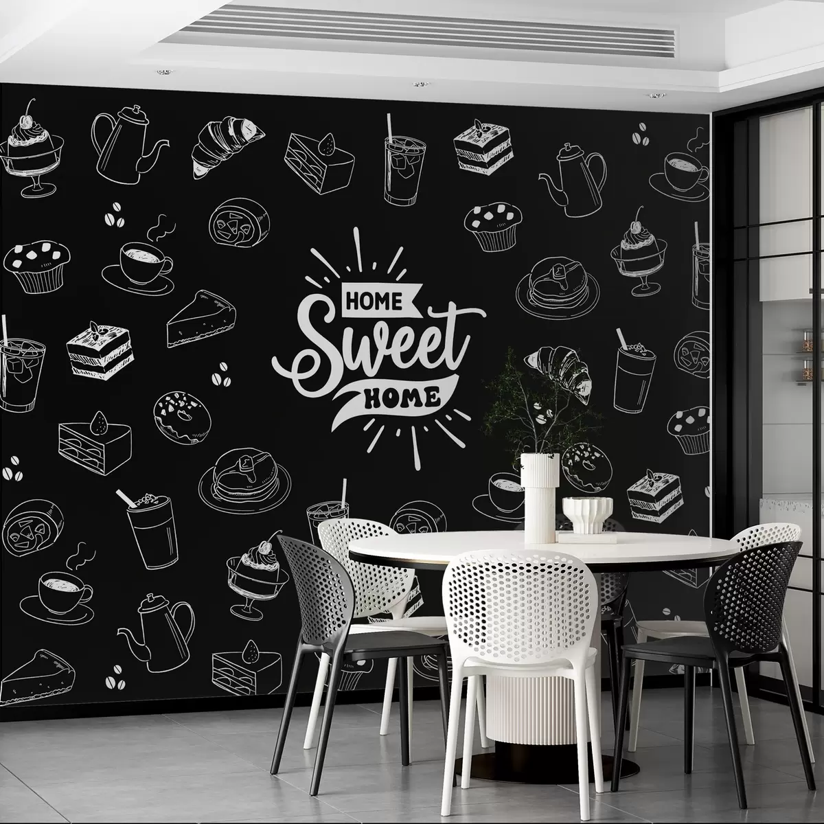 Тапете за зид црне тапете за кухињу са белим шарама бр. w02349
