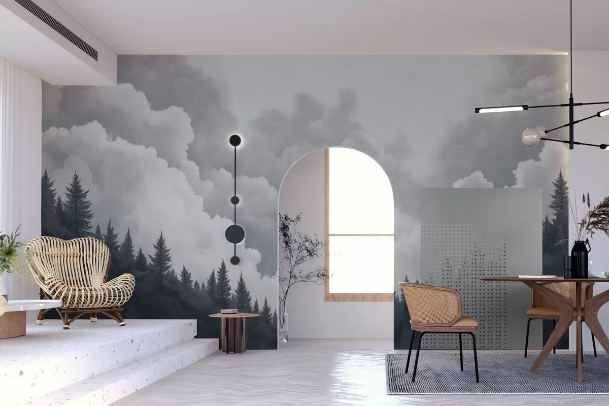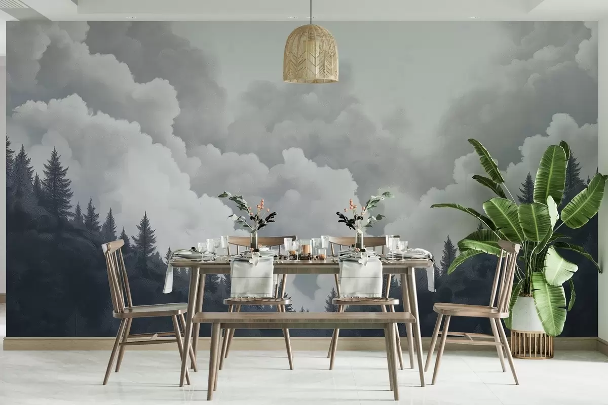 Тапете за зид Осликани густи облаци над шумом у стилу уља бр. w02411
