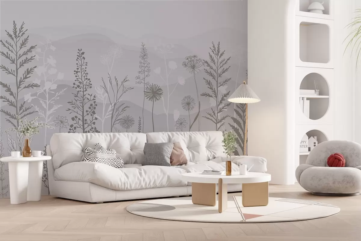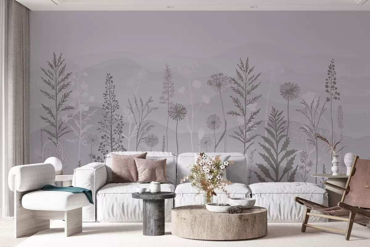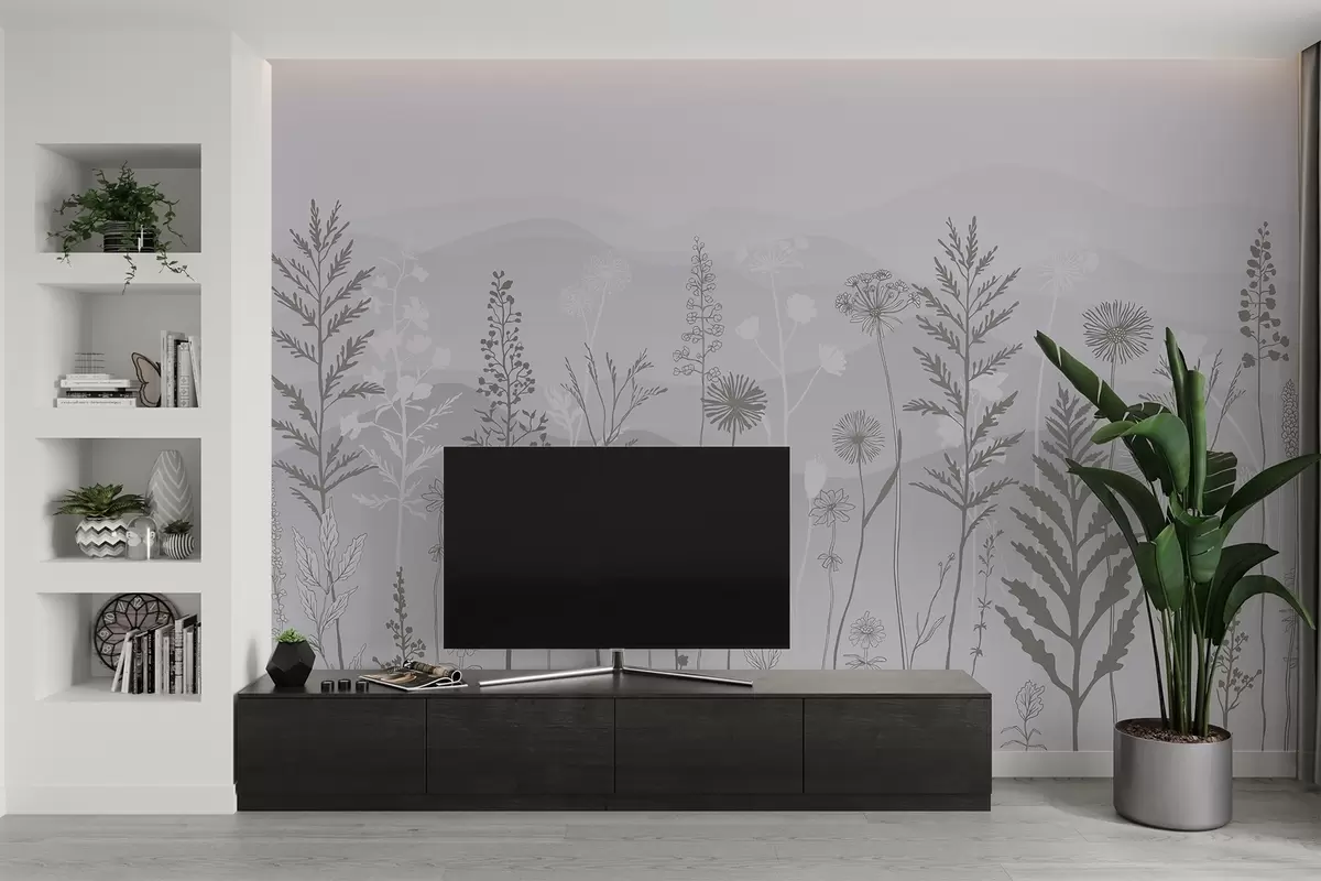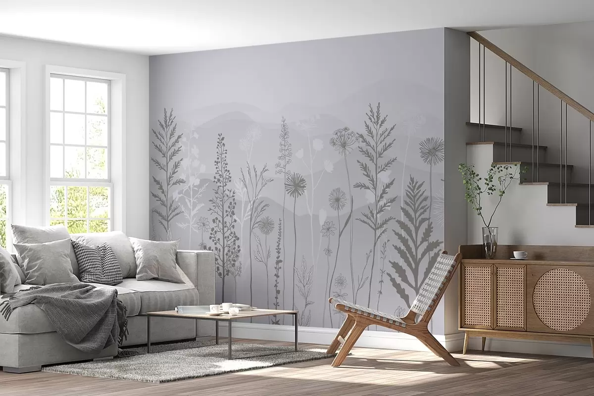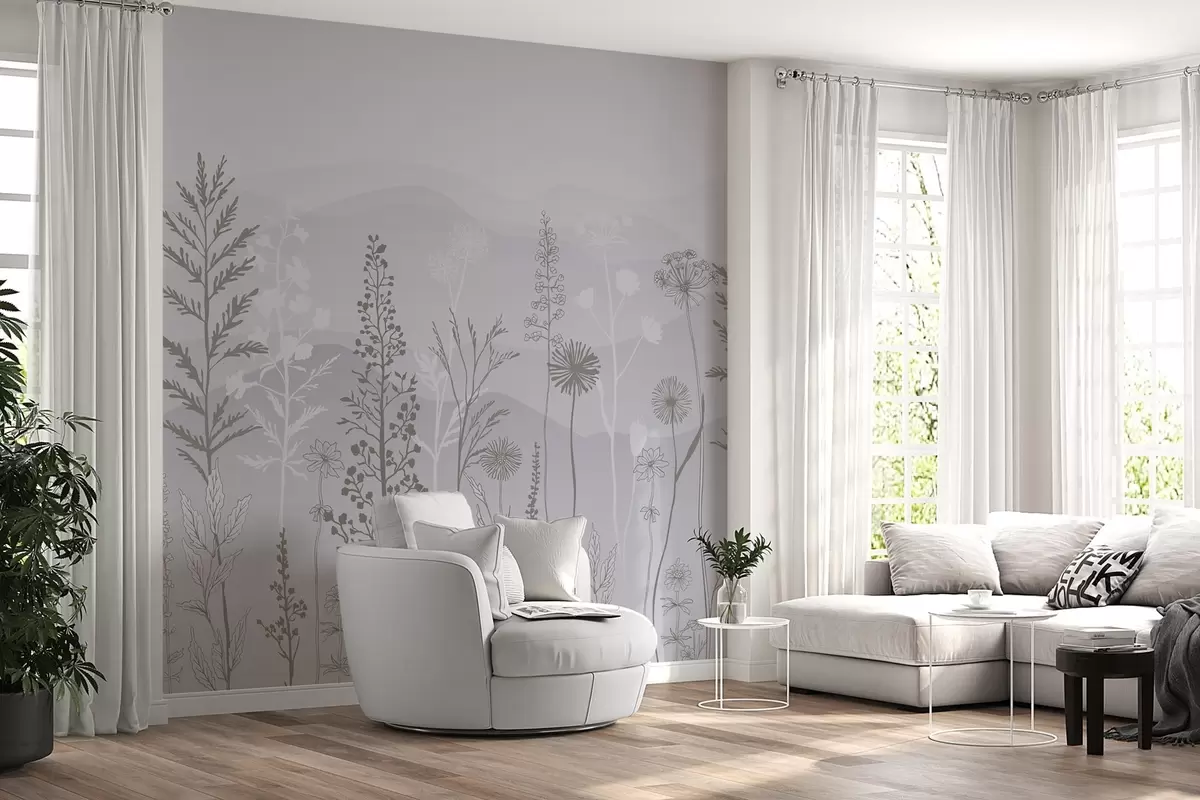 wall murals тапете у еко стилу, дивље цвеће у сивим тоновима w02443