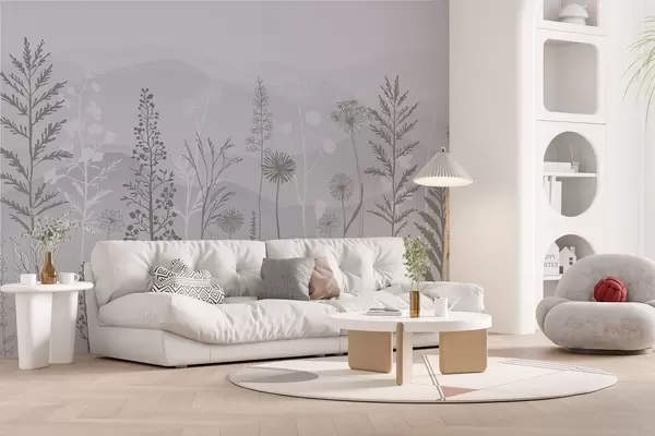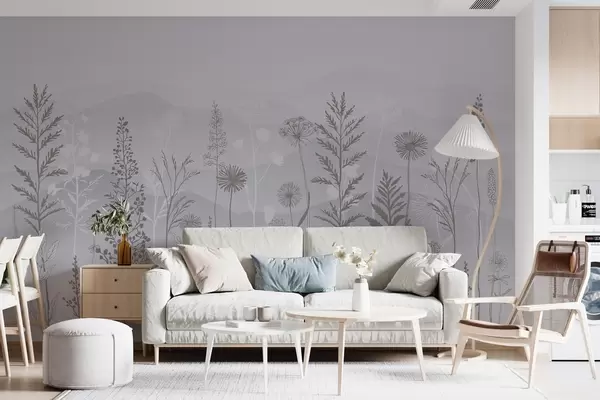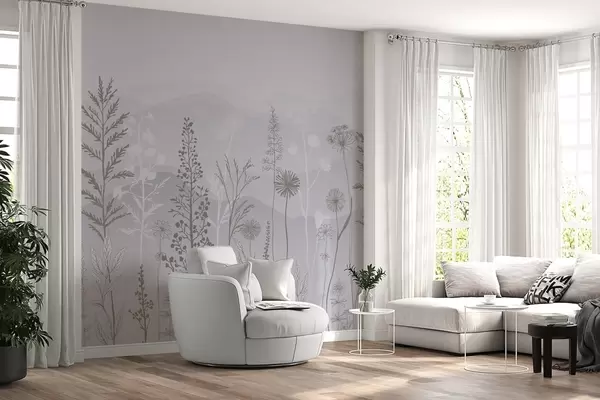 Тапете за зид тапете у еко стилу, дивље цвеће у сивим тоновима бр. w02443