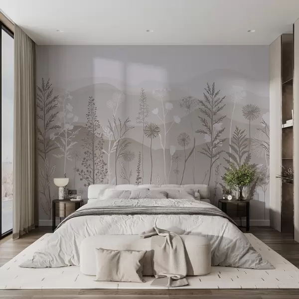 wall murals тапете у еко стилу, дивље цвеће у светло браон тоновима w02443v1