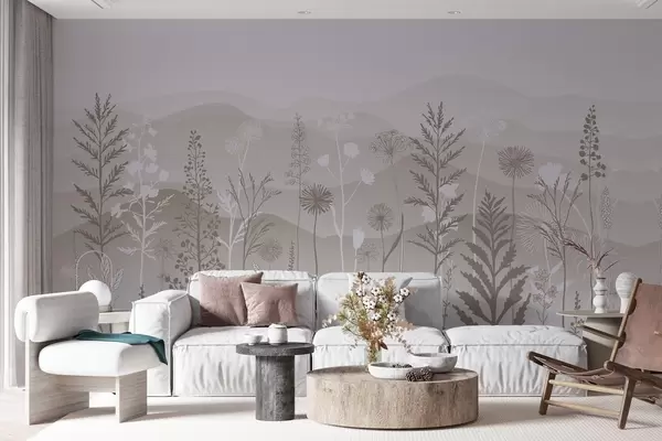 Тапете за зид тапете у еко стилу, дивље цвеће у светло браон тоновима бр. w02443v1