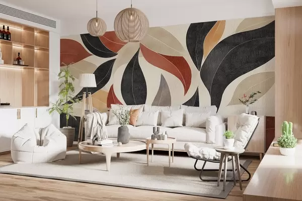 Тапете за зид апстрактни листови у палети земљаних тонова - беж, теракота и тамно сива. бр. w02452