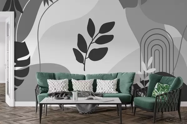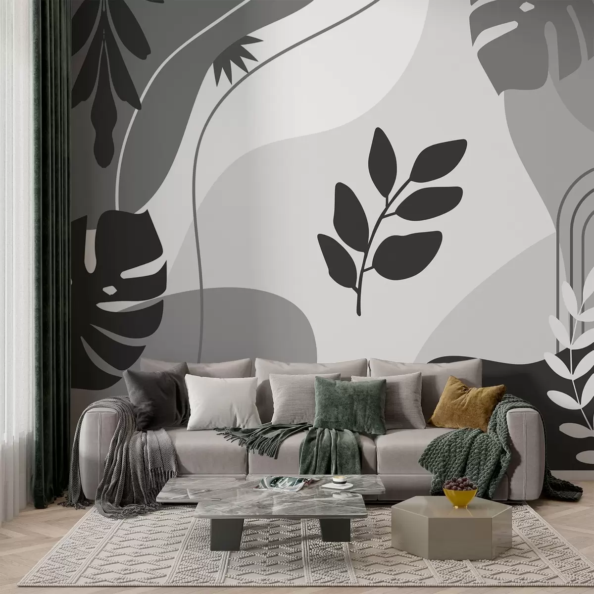 wall murals Апстрактни узорак са силуетама лишћа w02462v2