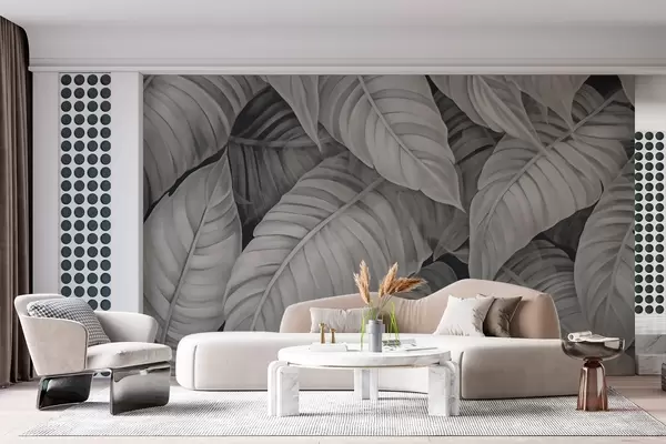 Тапете за зид Монохромна слика тропског лишћа бр. w02463