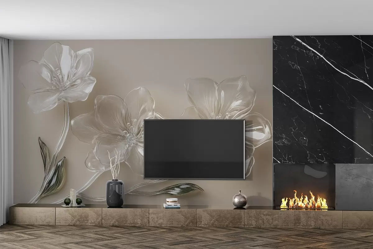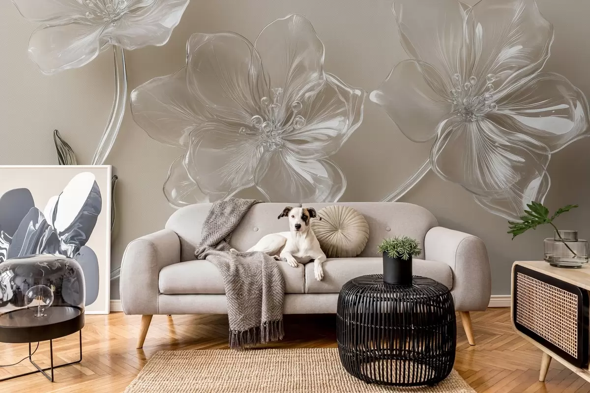 Тапете за зид велики цветови имитација стакла на беж позадини бр. w02518