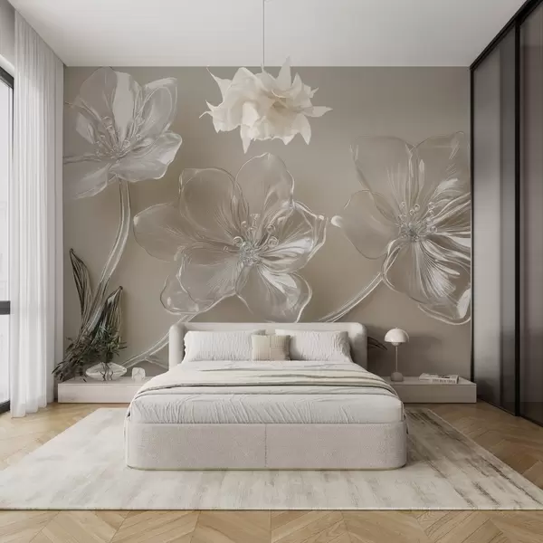 Тапете за зид велики цветови имитација стакла на беж позадини бр. w02518