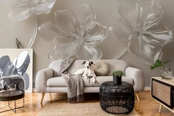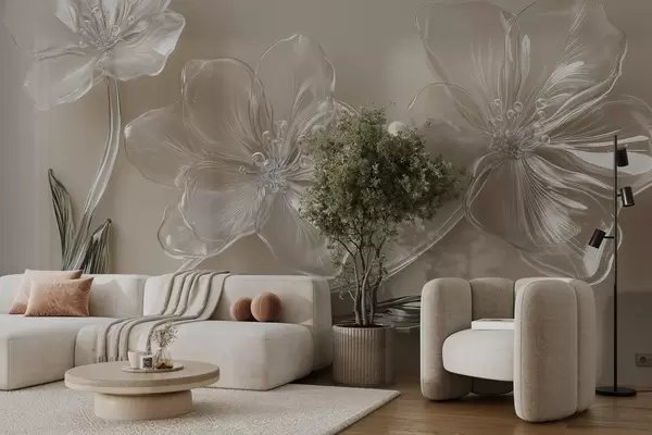 wall murals велики цветови имитација стакла на беж позадини w02518