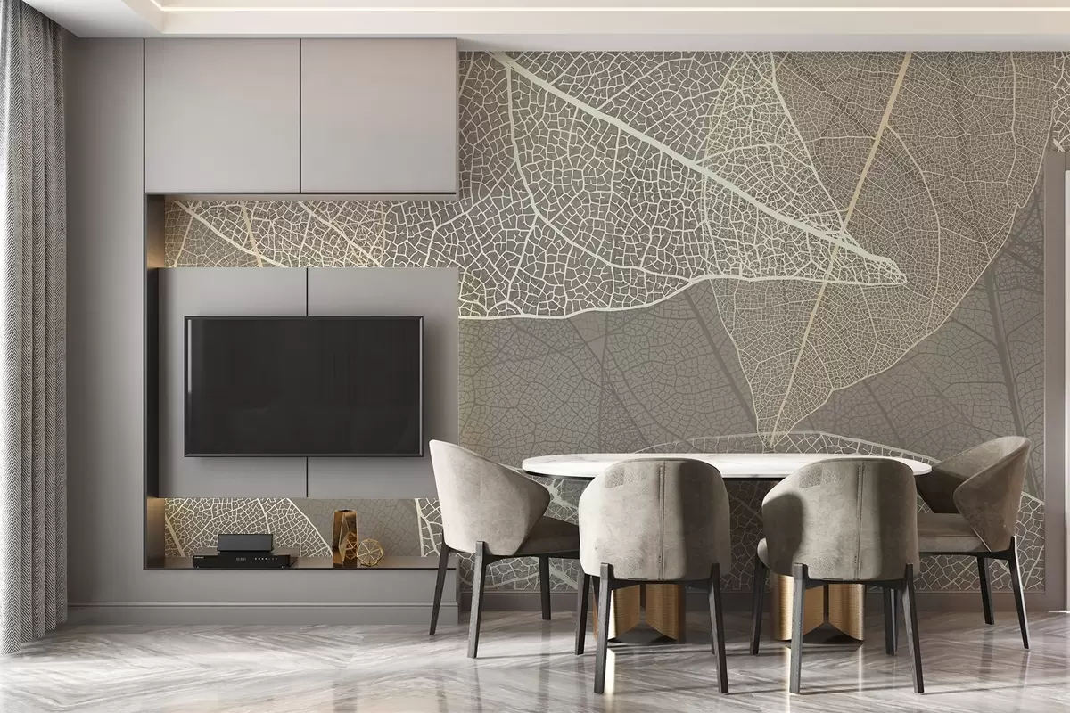 wall murals крупни план листова са жилама у топлим сивим тоновима w02520v2