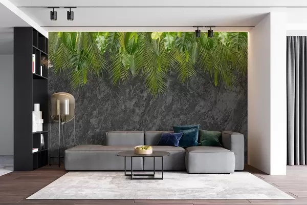 Тапете за зид тропско лишће на позадини имитације камена бр. w02547